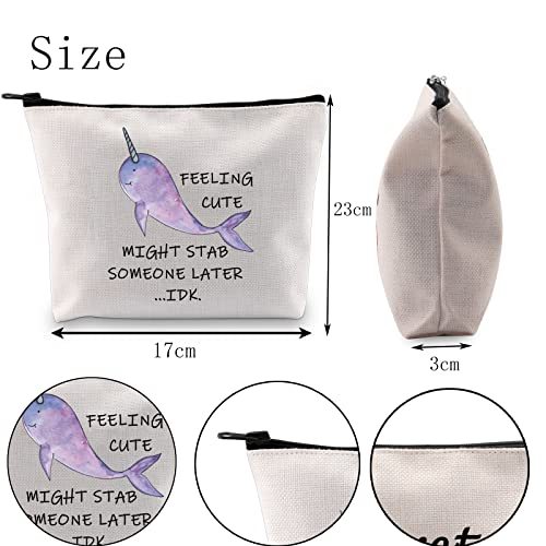 POFULL Narwhal Gift Sea Ocean Themed Party Gift for Narwhal Lover Ocean Animal Cosmetic Bag (Feeling Cute Might Stab Someone Later bag) 1