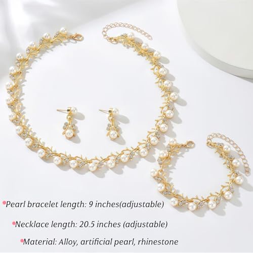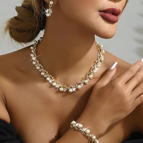 • Material: gold women's jewelry set is made of pearl and alloy. Rhinestone wedding necklace with bridal earrings and bracelet, unique design, well made. Bridal jewelry sets for weddings will add more appeal and glamour to your look