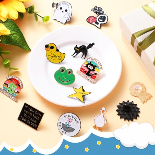 • Package Includes: you will receive 100 pieces of funny enamel pins in 25 styles, 4 pieces for each style; This ample quantity and brilliant colored assortment of cool pins serves your clothing decoration needs and daily replacement requirements, elevating you to a more vibrant and energetic look