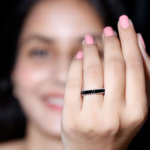 • A timeless circle of love, this Full Eternity Band Ring is adorned with Lab Created Black Diamonds, each stone whispers a cherished memory. Celebrate every milestone with this Wedding Anniversary Band Ring that shines as brightly as your love.