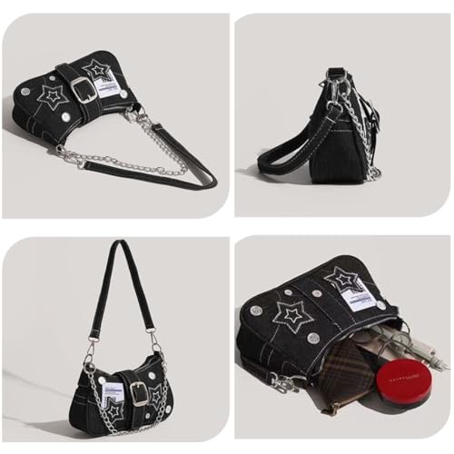 • Edgy Grunge Details: Featuring a zipper closure, chain strap, and standout star accents, this y2k purse adds a rebellious edge to your grunge accessories collection.