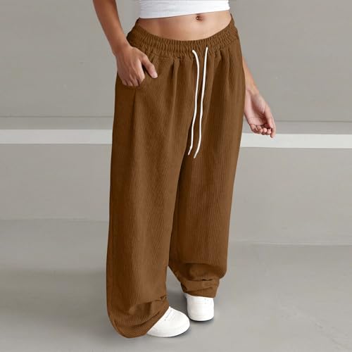 HOT ! HGps8w Womens Versatile Wide Leg Corduroy Pants 2025 Fall Loose Drawstring Waist Baggy Palazzo Pants with Pockets