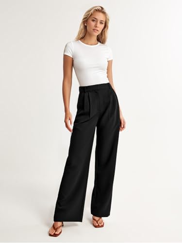 HOT ! ELLEVEN Wide Leg Dress Pants for Woman, High Waisted Business Casual Work Trousers with Pockets