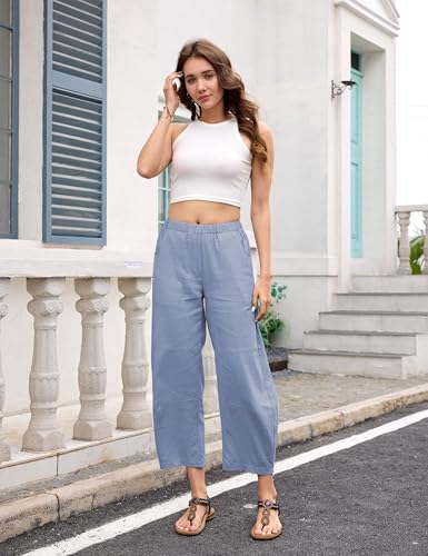 More information about Lviefent Womens Wide Leg Barrel Pants Casual Elastic Waist Cotton Linen Ankle Length Trouser with Pockets (Dustyblue-L)