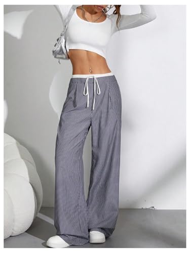 HOT ! SweatyRocks Women's Striped Print Wide Leg Pants Low Waist Tie Front Loose Long Trousers