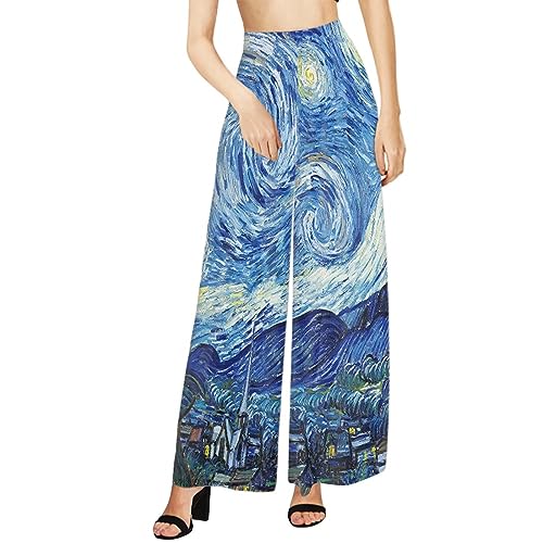 More information about Irisjudy Womens Casual Wide Leg Long Lounge Pant Trousers, Monet Art Elastic High Waisted Palazzo Trousers Plus Size Clubwear