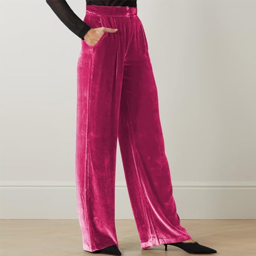 • High Waist Velvet Wide Leg Pants for Women: Womens fall winter outfit high waist velvet pants long flowy palazzo pants elastic waist casual trouser with pockets, women's velvet pants,black velvet pants, green velvet pants, red velvet pants,blue velvet pants, pink velvet pants,velvet wide leg pants for women suitable for daily wear, work, casual, outdoor, spring and fall