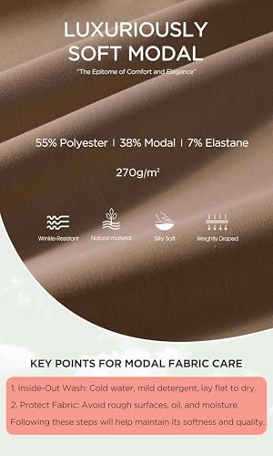 • Modal Soft: Made of ultra soft modal fabric blend with polyester and spandex, 270g/m² medium weight fabric, weightly draped, moisture absorption and wrinkle-resistant, keep the shape of the pants well.