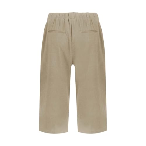 Womens Capris for Summer 2025 Linen Knee Length Pants Loose Wide Leg Elastic Bermuda Shorts Side Button Trouser Pocket 6
