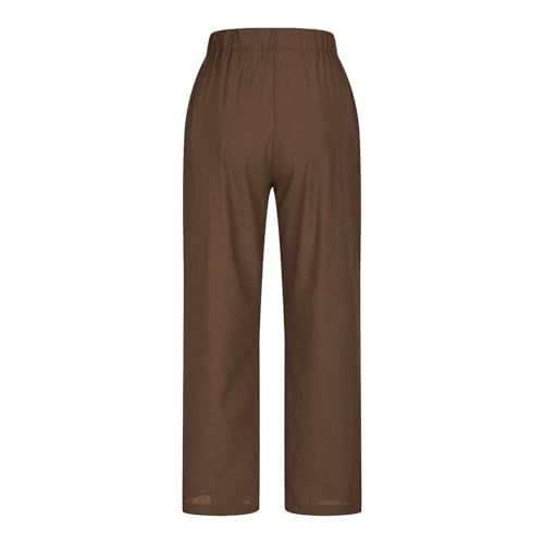 HOT ! Linen Pants for Women Baggy Boho Casual Palazzo Pants Pull On Elastic Smock Waist Loose Flowy Capri Pant with Pockets