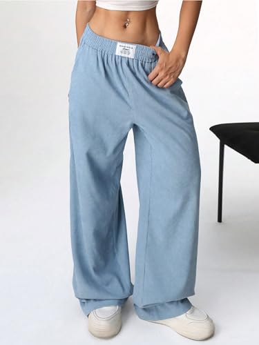 HOT ! SweatyRocks Women's Wide Leg Pants Elastic High Waisted Casual Trousers with Pockets