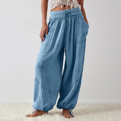 • Features:Women wide leg linen capri pants,solid color loose fit fashionable straight leg palazzo trousers pants,casual drawstring high waist elastic pleated lounge cropped pants with pockets,make you become the fashion center of attention in the crowd