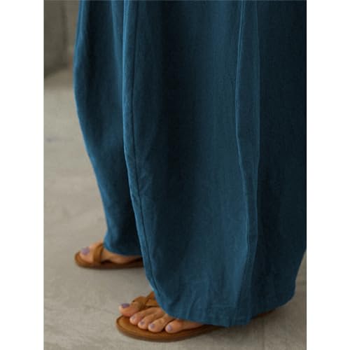Women's Linen Pants with Deep Pockets Casual Elastic High Waist Wide Leg Trousers Plus Size Beach Pants S-5XL 5