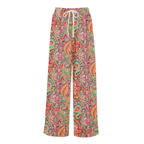 HOT ! Wide Leg Floral Pants for Women Casual High Waisted Lounge Pants Drawstring Loose Fit Gauze Boho Pant Beach Clothes