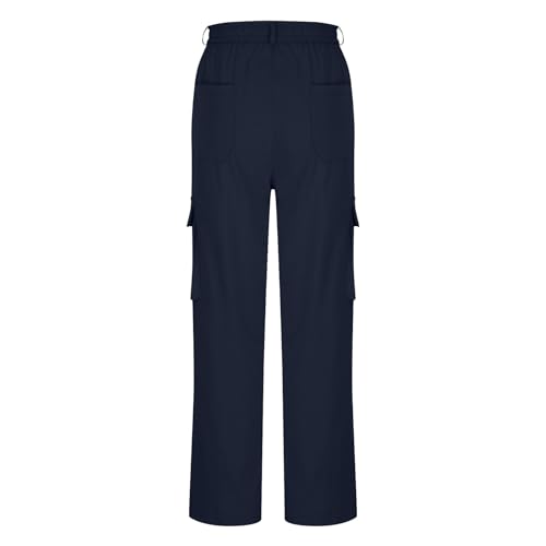 HOT ! Women's Cargo Pants Solid Color Multiple Pockets Workwear Trousers Casual Straight Button Baggy Cargo Pants