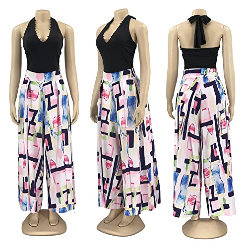 Wide Leg Pants for Women Casual Colorful Printed High Waist Palazzo Lounge Pants Loose Fit Trousers with Pockets 3