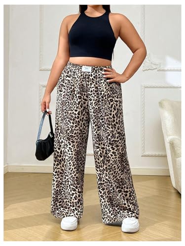 MakeMeChic Women's Plus Size Pants Leopard Print Slant Pocket Elastic Waist Straight Leg Trousers 4