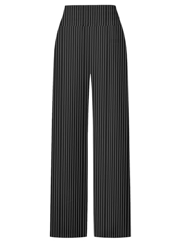 HOT ! Betusline Women's High Waist Dress Pants Business Side Button Work Wide Leg Pants Straight Leg Trousers, Stripe Black, Medium