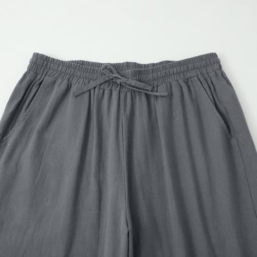 Women Linen Pants 2025 Summer High Waist Elastic Drawstring Straight Leg Lounge Pant Casual Loose Beach Trousers 4
