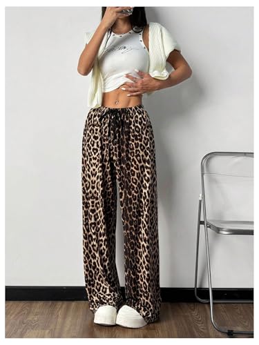 MakeMeChic Women's Leopard Print Pants Cheetah Sweatpants Drawstring Waist Wide Leg Baggy Jogger Pants 6