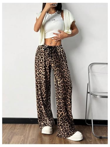 HOT ! MakeMeChic Women's Leopard Print Pants Cheetah Sweatpants Drawstring Waist Wide Leg Baggy Jogger Pants