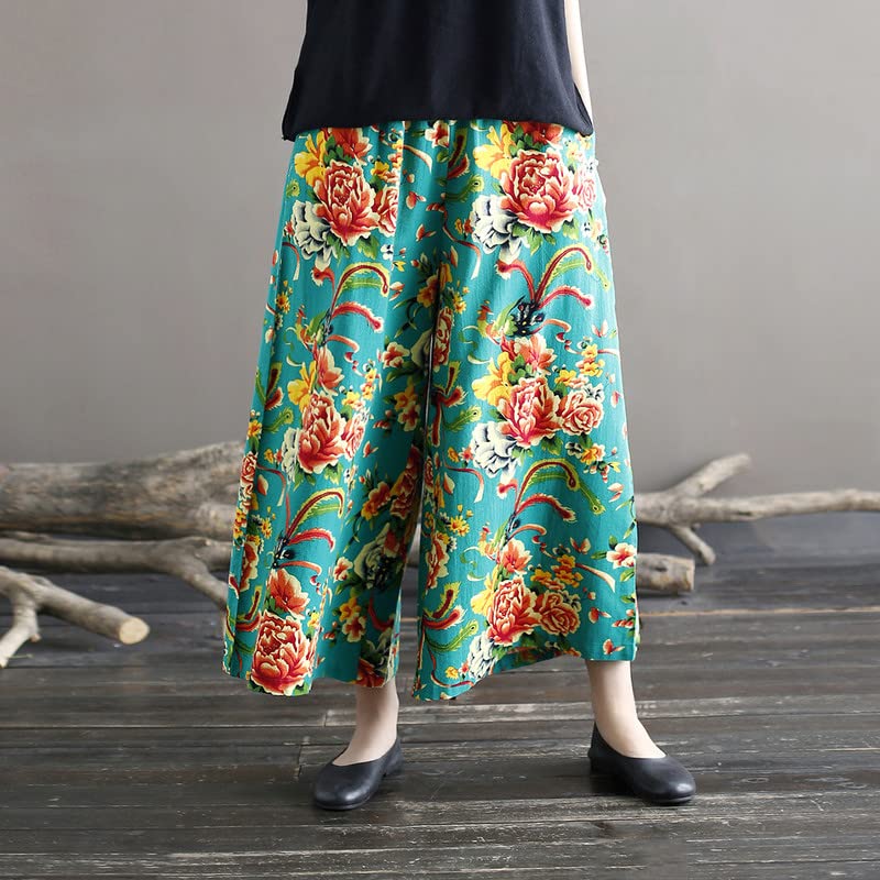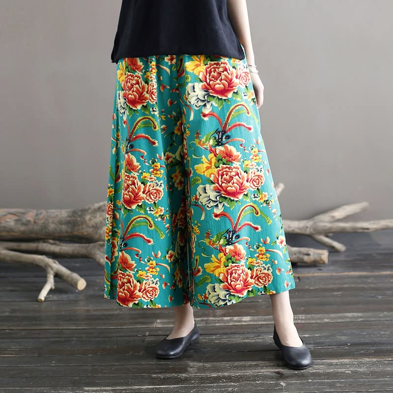 HOT ! Shanghai Story Women's Casual Floral Print Summer Beach High Waist Wide Leg Pants with Pockets