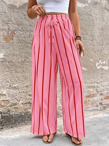 • Loose Fit: Featuring a striped color block design, Charfille plus size wide leg trousers bring a modern flair to a classic silhouette. The drawstring and elastic waist allow for a customizable fit, while the wide leg and straight leg style create a relaxed look