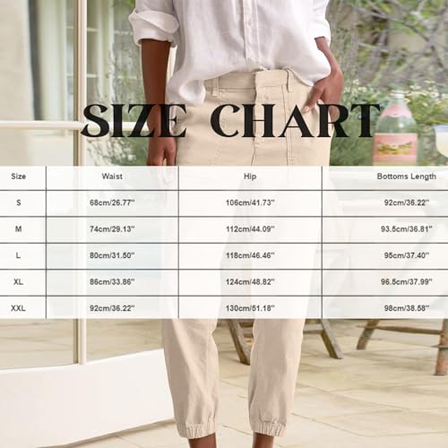 HOT ! Women Linen Joggers High Waisted Tapered Leg Cropped Chino Dress Pants with Pockets Casual Fall Comfy Cute Travel Slacks