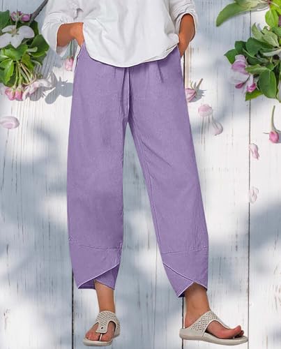 HOT ! Cotton Linen Capri Pants Summer Printed Casual Cropped Palazzo Lounge Pants Trendy Comfy Baggy Trousers with Pockets