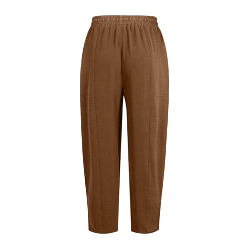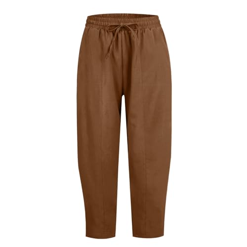 HOT ! Cropped Linen Pants for Women Casual Boho Drawstring Waisted Harem Pants with Pockets Summer Loose Lightweight Pant