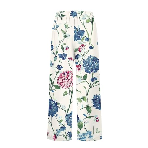 Womens Pants Boho Floral Linen Pants Elastic Waisted Casual Cotton Linen Drawstring Summer Beach Vacation Trouser 6