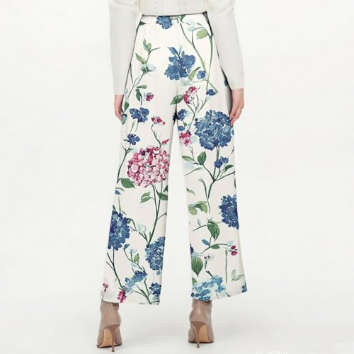 HOT ! Womens Pants Boho Floral Linen Pants Elastic Waisted Casual Cotton Linen Drawstring Summer Beach Vacation Trouser