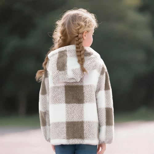 Girls Fleece Jacket Cute Plaid Zip Up Hoodie Sherpa Coat Winter Fall Warm Soft Girl Clothes With Pockets 8-14 Years 7