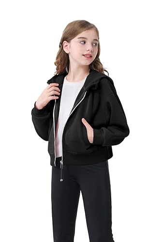 Rolanko Girls Zip Up Hoodies Cropped Sweatshirts Long Sleeve Jackets with Pockets Kids Tops Clothes 7-15 Years 1