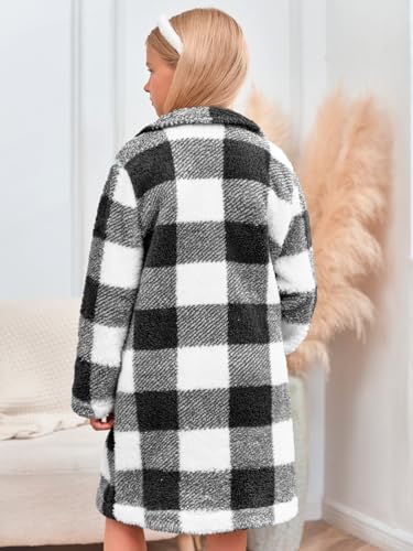 Meikulo Girls Plaid Fleece Jacket Kids Sherpa Long Winter Coats Lapel Fashion Outerwear 5-14 Years 4