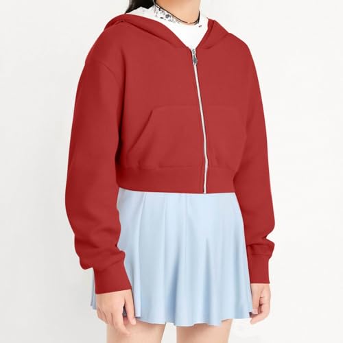 HOT ! Girls Sweatshirt - Full-Zip Cropped Hoodies, Fleece Cute y2k Aesthetic Clothes, Fall Casual Workout Jackets 5-14 Years