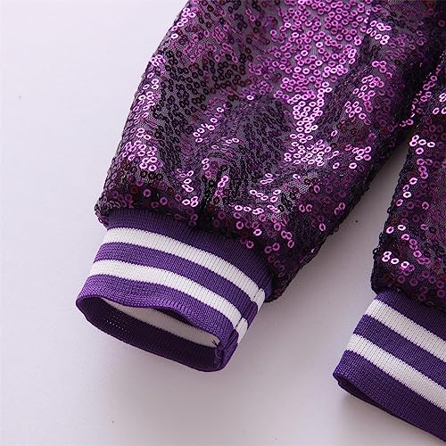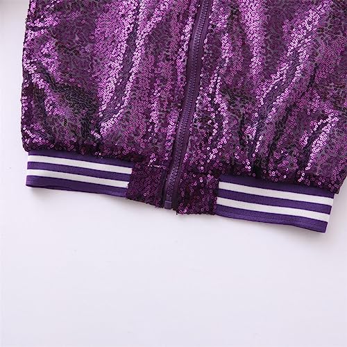 Mowbeat Girls Purple Sequin Jacket Zipper Hoodie Varsity Jacket for Kids Sparkly Sequin Long Sleeve Hoodies Coat 6
