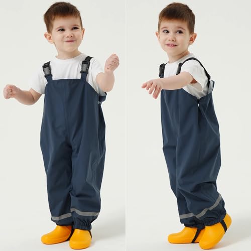 Fewlby Kids Rain Bib Pants, Toddlers Waterproof Suspender Dirty Proof Rain Wear for Boys and Girls 3