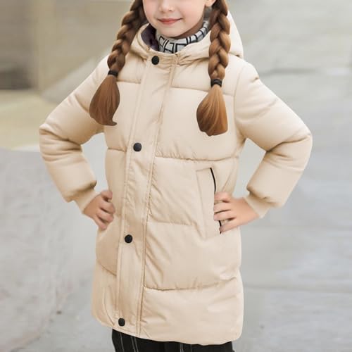 Girls Puffer Jacket Long Down Coat Heavyweight Hooded Padded Winter Coat Medium Length Quilted Outwear for Kids 6