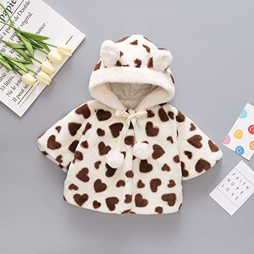 Toddler Girls Hooded Jacket Button Thick Fleece Heart Print Windproof Soft Outerwear Warm Puffy Ears Coat 4