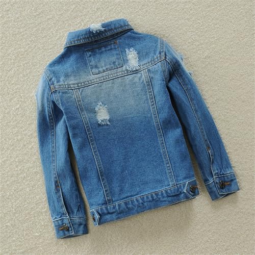 Stylish Distressed Denim Jacket for Kids Long Sleeve Button Up Lapel Collar Denim Coat Girls Casual School Daily Wear 6