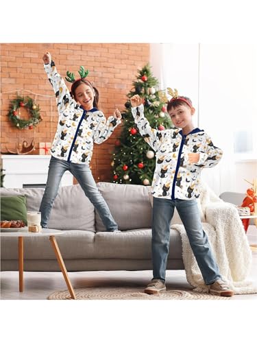 Black Bat Cat Orange Star Girls Fleece Jacket Girls Fall Jacket Boys Coats Zip Up Hoodie Children Outerwear 2-10T 5