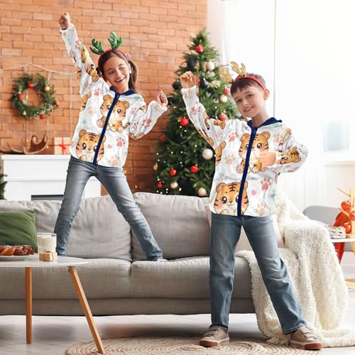 Cute Tiger Pattern Prints Design Toddler Fleece Jacket Girl Boys Hooded Fleece Jacket Coat Warm Outwear Zip-up 3-10T 6