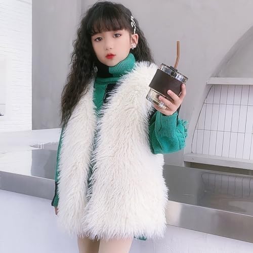 Girls Faux 𝗙𝘂r Vest Jacket V-Neck Sleeveless Thick Fluff Warm Windproof Coat Toddler Open Front Outerwear 4