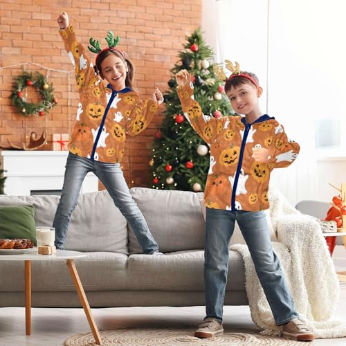 Halloween Pumpkins and Ghosts Toddler Fleece Jacket Girl Boys Hooded Fleece Jacket Coat Warm Outwear Zip-up 3-10T 3