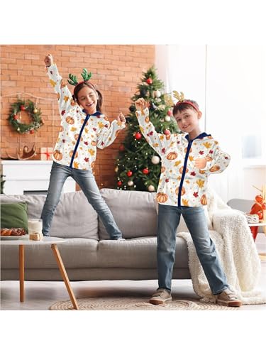 Orange Fall Maple Leaf Pumpkin Girls Fleece Jacket Girls Fall Jacket Boys Coats Zip Up Hoodie Children Outerwear 2-10T 3
