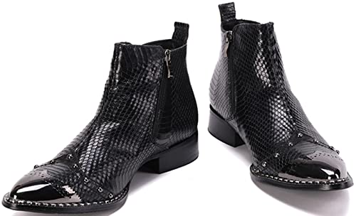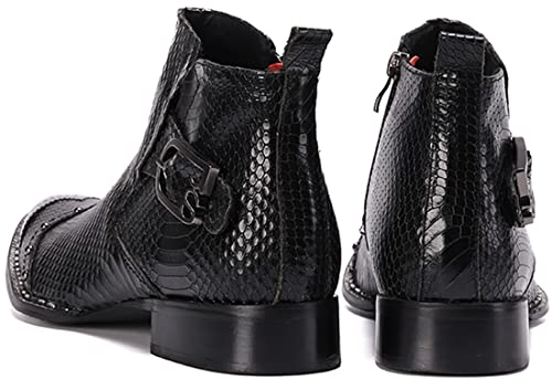 Santimon Mens Black Dress Ankle Chelsea Boots with Studded Metal Pointed Toe – Genuine Leather Punk Gothic Rock Buckle Western Boots for Disco Stage Party 7