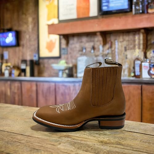 • DESIGN: Men’s Short Ankle Leather Cowboy Western Boot |Simple And Versatile Style| Ankle Length | Square Toe