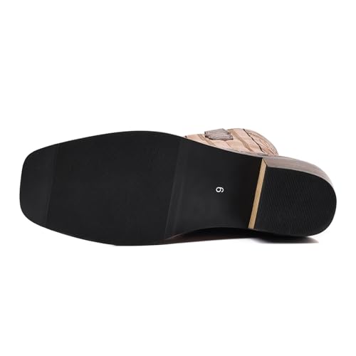 Mens Cowboy Boots Embroidered Snake Embossed Vintage Western Calf Boots with Chunky Sole 6