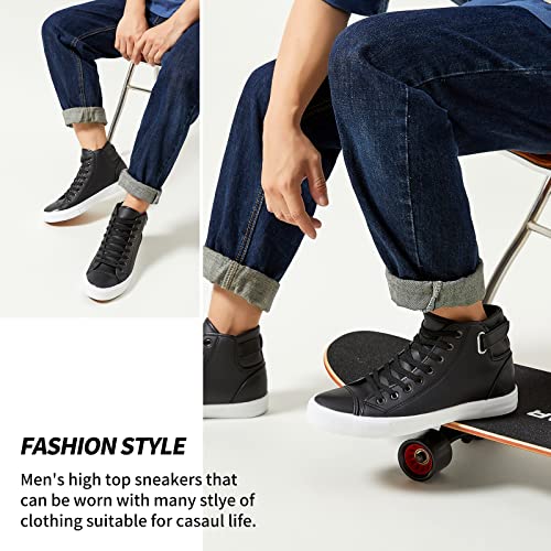 yageyan Men White high top Sneakers for Casual Black pu Leather Fashion Shoes for Men 6